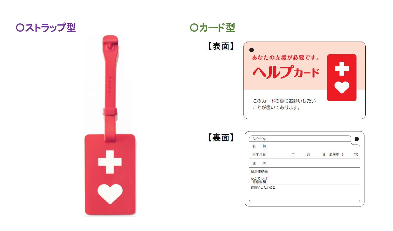 ヘルプマーク(カード型・ストラップ型)は、県身障連事務局で配布しています!