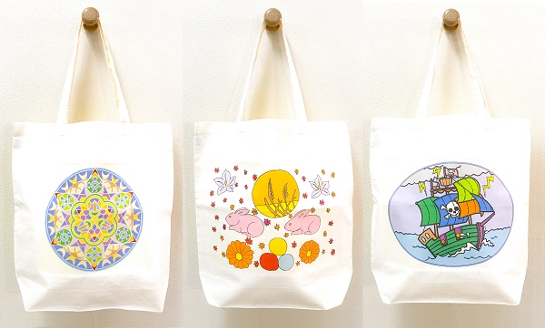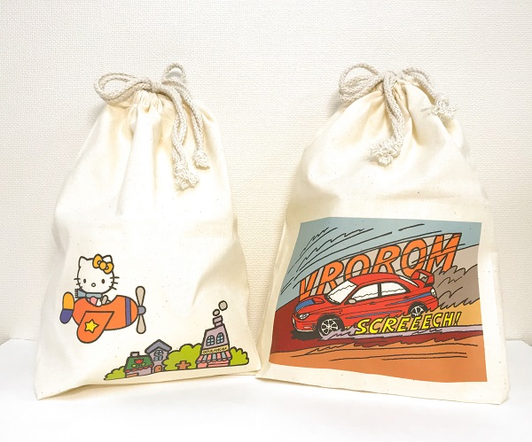 完成した絵はアイロンプリント紙に印刷し、バックに接着してお渡しします。 |