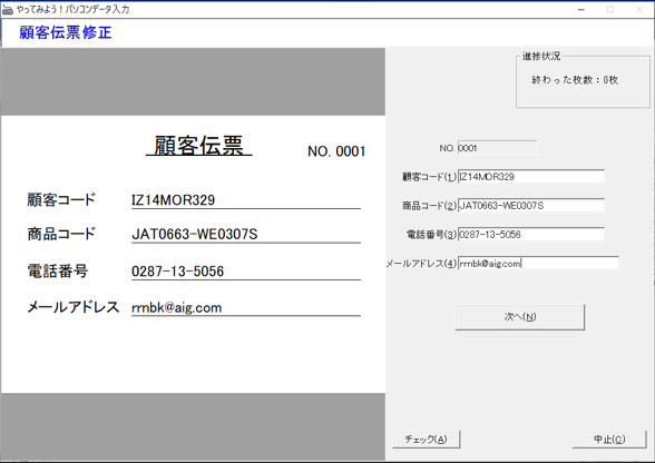 入力内容に間違いがないか、画面を見ながらチェック、間違いがあれば、修正します。